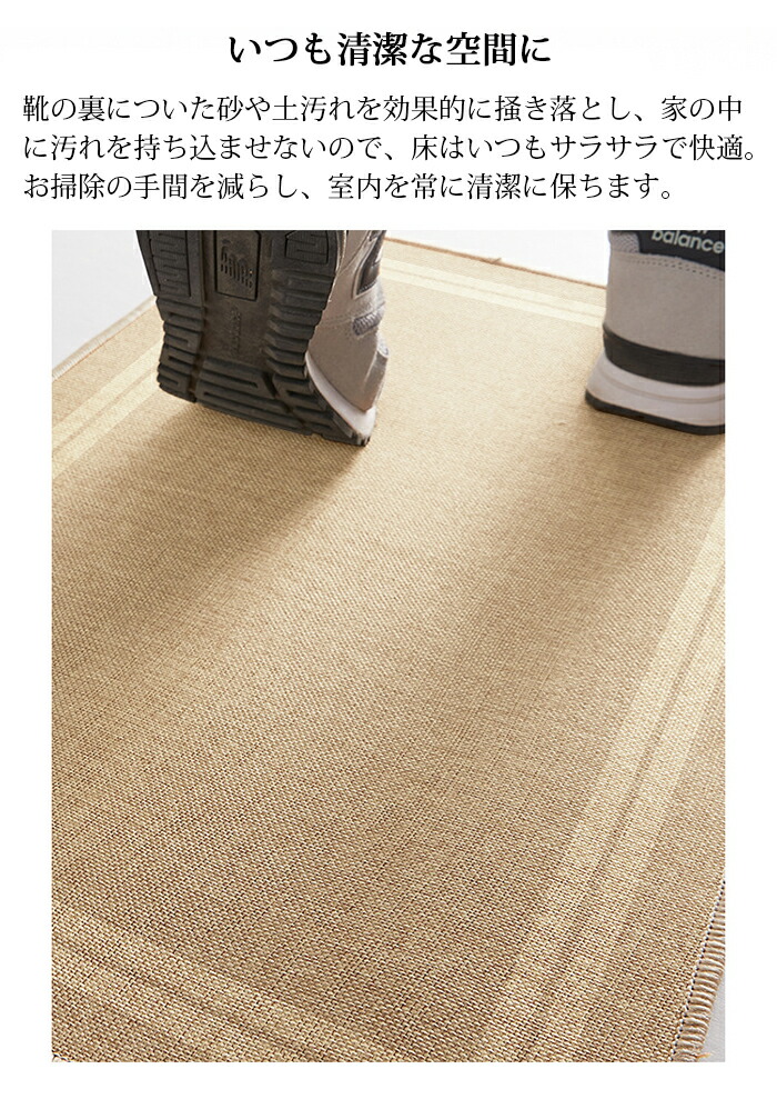 靴の裏についた砂や土汚れを効果的に掻き落とし、家の中に汚れを持ち込ませないので、床はいつもサラサラで快適。お掃除の手間を減らし、室内を常に清潔に保ちます。