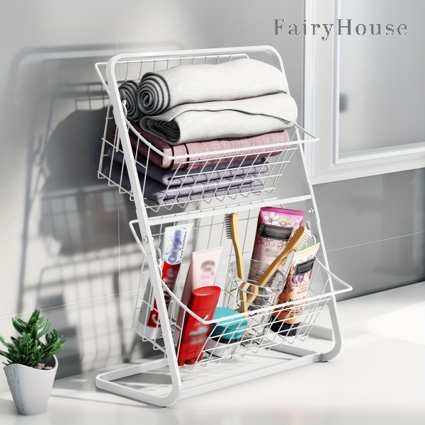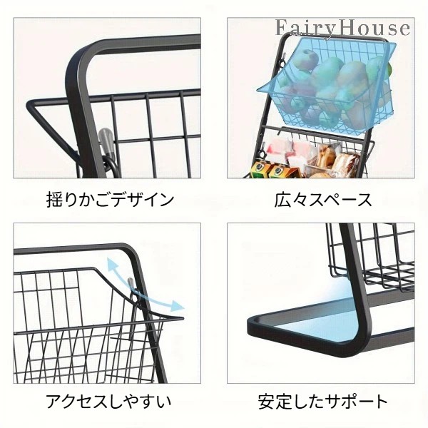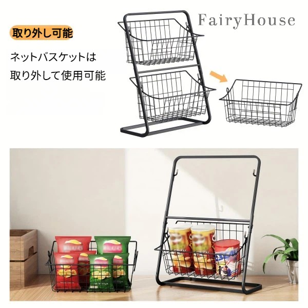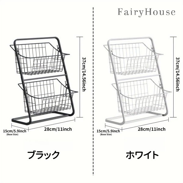 2段メタル収納バスケット - 果物、野 キッチン用品 食器 調理器具 超目玉商品 ブラック ホワイト