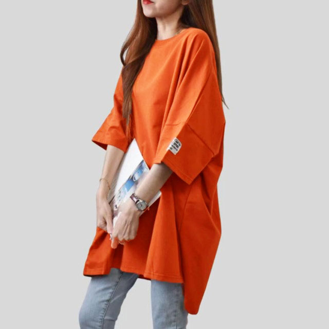 Tシャツ 半袖 ロングTシャツ ゆった レディースファッション 通販 ブラック オレンジ グレー グリーン