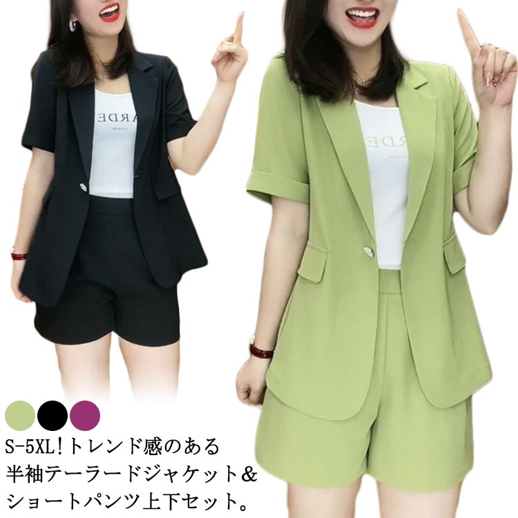 半袖スーツ ショートパンツ レディース セットアップ スーツジャケット サマースーツ 夏スーツ 半袖 スーツ