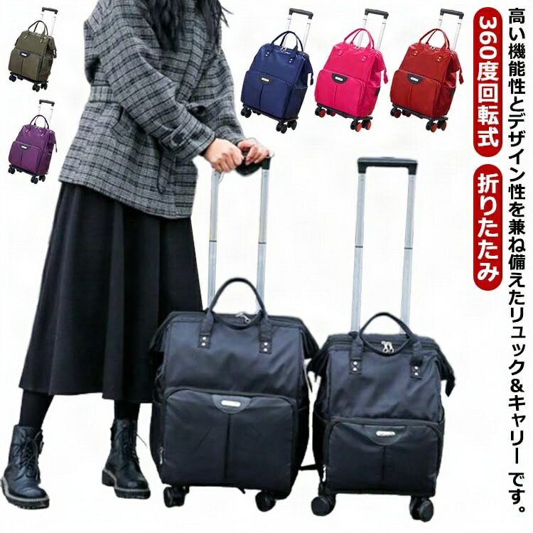 軽量 折りたたみ キャスター付きバッグ ソフトキャリーケース 大容量 機内持ち込み 2way 省スペース 旅行 1泊 トートバッグ
