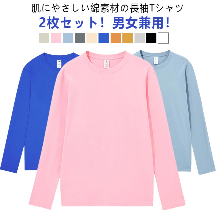 長袖 ながそで 2枚セット ロンt 綿 長袖tシャツ クルーネック レディース メンズ トップス tシャツ ロングtシャツ カジュアル ゆったり 無地 カットソー 部屋着 ルーム おしゃれ