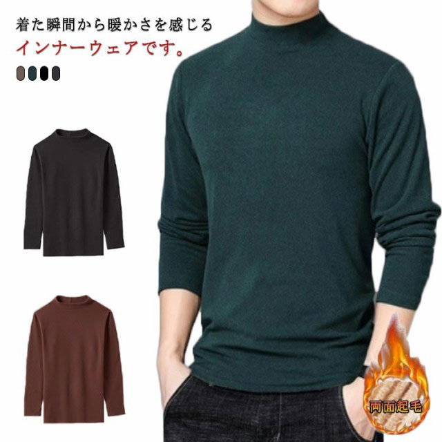 Tシャツ 冬 メンズ 両面起毛 ストレッチ 防寒 カットソー 長袖 あったか インナー 保温 秋 プチハイネック 暖かい 微起毛 ヒートテック インナーシャツ 無地 大きいサイズ 伸縮 極暖