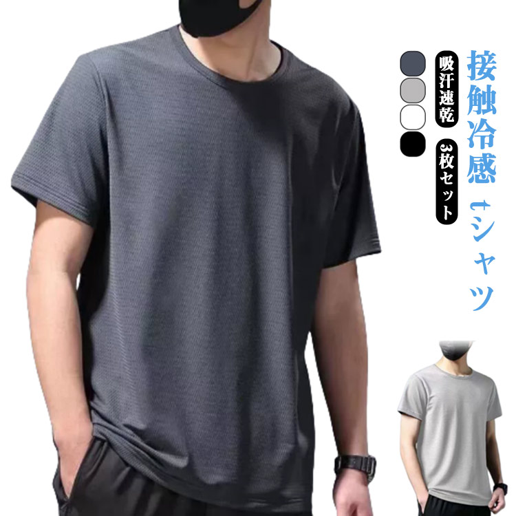 3枚セット スポーツtシャツ 半袖Tシャツ メンズ 冷感 メッシュ ゆったり トレーニングウェア ランニングTシャツ tシャツ 夏 ラッシュガード 涼しい 接触冷感 通気 速乾 ストレッチ