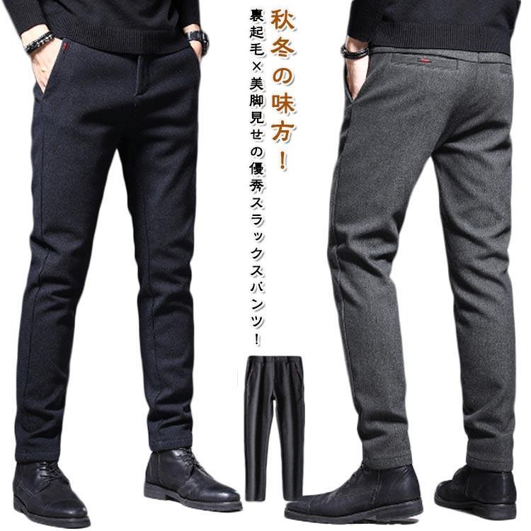 暖かい メンズ おしゃれ かっこいい 裏起毛 ロング丈 防寒 ロングパンツ ボトムス パンツ ズボン 通勤 シン カジュアル ビジネス