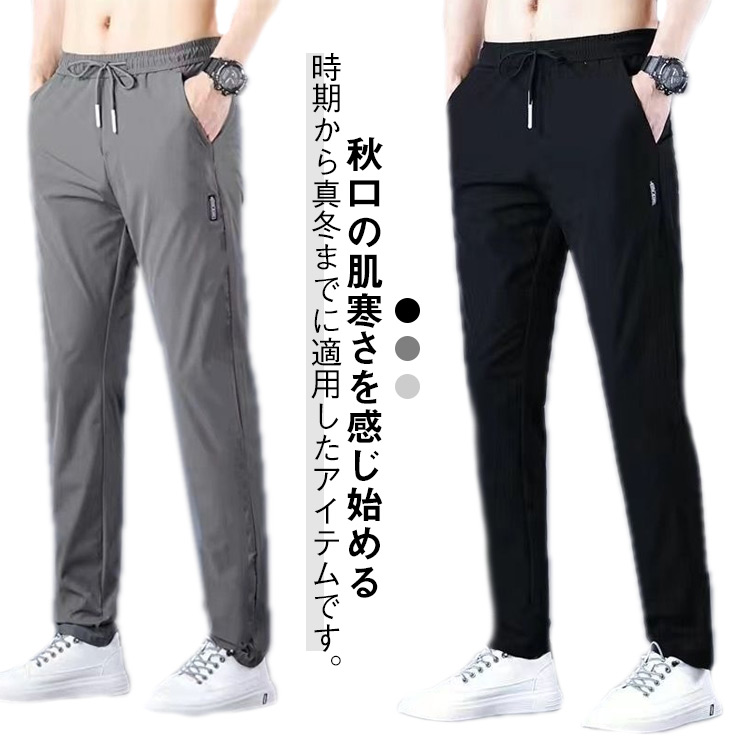 2枚セット 涼しい アイスシルクパンツ メンズ 冷感パンツ ずぼん 接触冷感 夏用 イージーぱんつ ズボン スラックス ボトムス 大きいサイズ オフィスカジュアル ストレートパンツ
