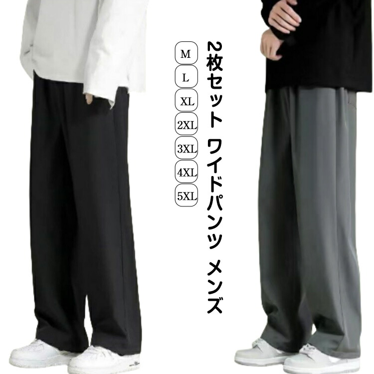 ワイドパンツ メンズ ズボン 2枚 夏用 イージーパンツ - アイスシルク 冷感 薄手 速乾 ボトムス 夏 ウエストゴム 軽量 調整紐 大きいサイズ カジュアル