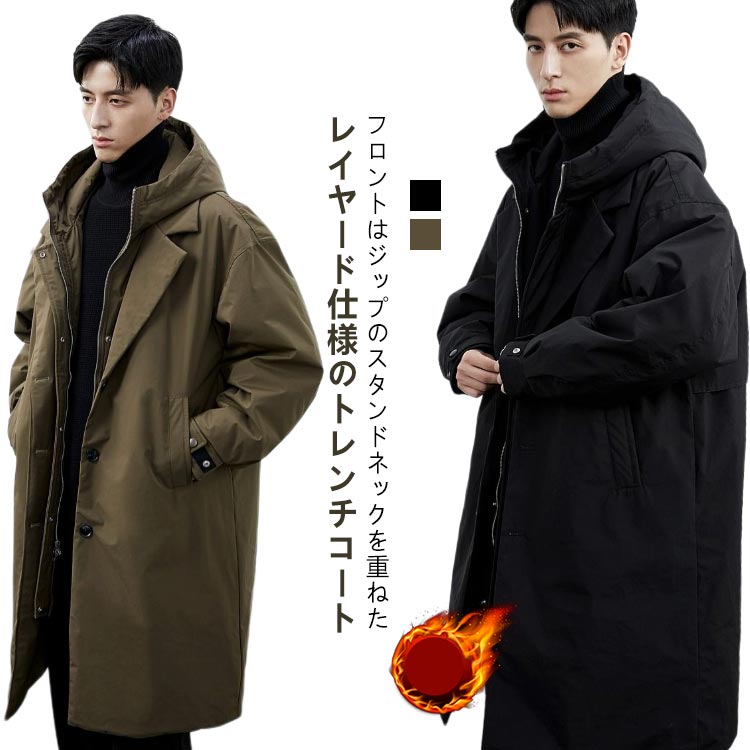 中綿 フード付き ミリタリーコート ロングコート メンズ 厚手 アウター コート ロング丈 ミリタリー レイヤード仕様 トレンチコート 大きいサイズ キルティングコート 中綿コート ジッ 秋冬