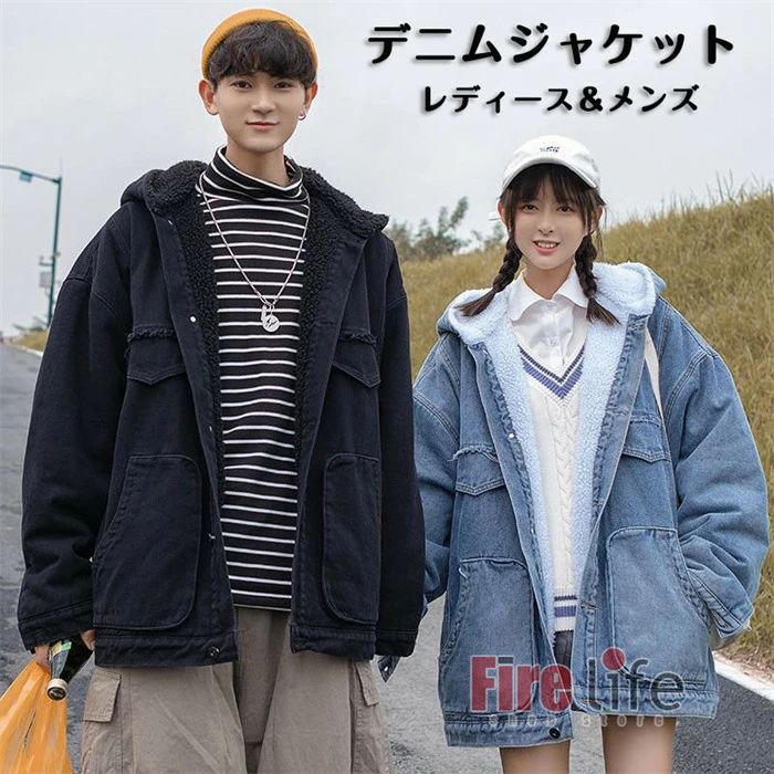 メンズ 冬 M~4XL ムートン お揃い 冬服 男女兼用 日常 ジャンパー 暖かい 大きいサイズ 裏起毛 デニムジャケット カップル Gジャン ゆったり 保温 個性 ブルゾン フード付 裏ボア