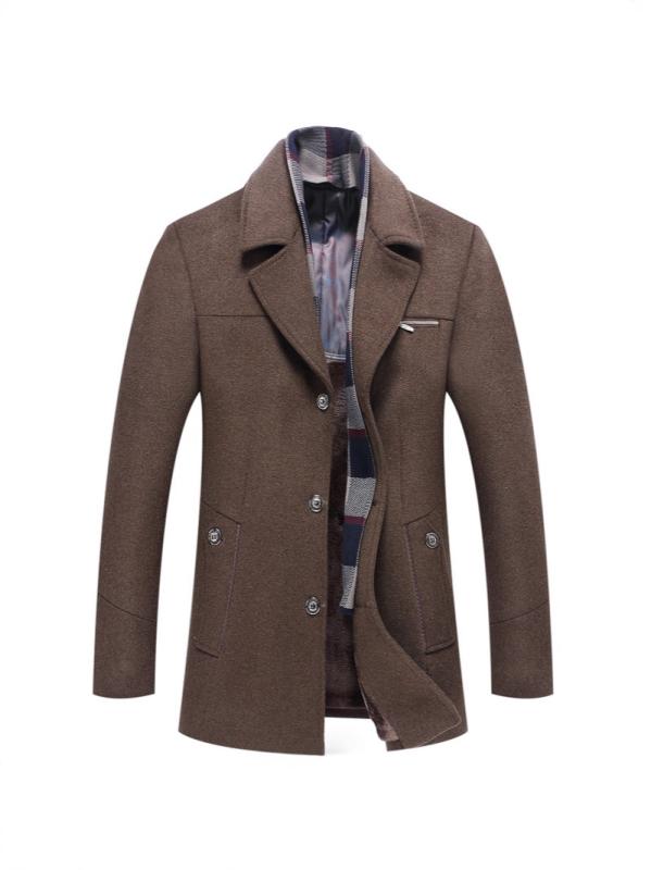 コート メンズ 秋冬 ウール混 ウール スカーフカラー ラペル 無地 厚手 シングルブレスト ビジネス カジュアル 日常 ノーアイロン パッチポケット ネイビー ブラウン グレー ストレートヘム