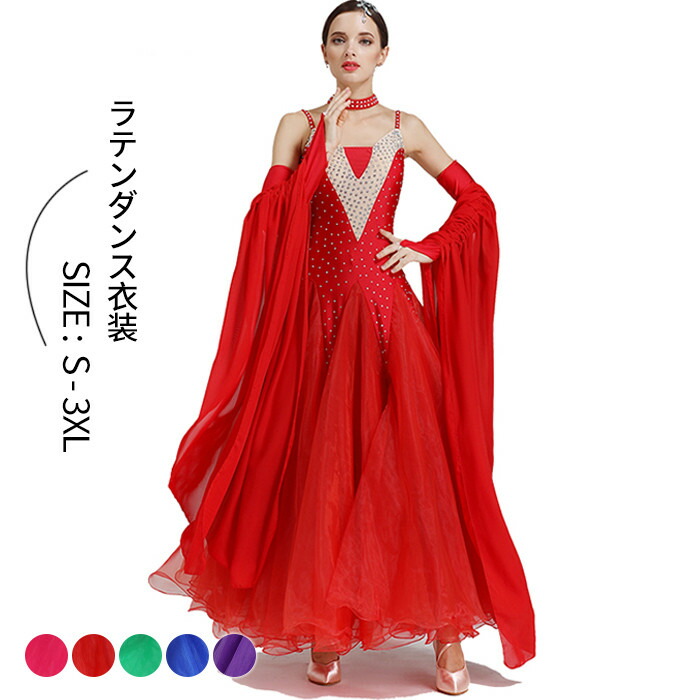 モダンドレス 社交ダンス衣装 ラテンドレス スタンダードドレス ワルツダンス マキシ丈 ワンピース バックレスドレス ラテン衣装 半袖 社交ダンスドレス 豪華なドレス ダンス衣装 ダンスウエ 大きい裾