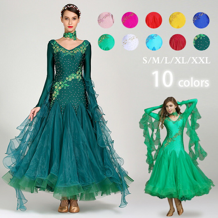 社交ダンス衣装 モダンドレス ラテンドレス スタンダードドレス ワルツダンス 紗 レース ロングワンピース マキシ丈 ラテン衣装 社交ダンスドレス 大きい裾 ダンス衣装 ダンスウエア ダ 豪華なドレス