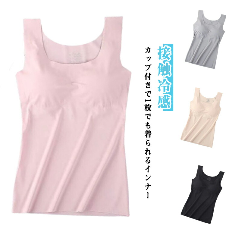 カップ付き タンクトップ ノンワイヤー レディース 接触冷感 ノースリーブ ブラトップ 長め丈 ワイドストラップ ルームウェア 大きいサイズ