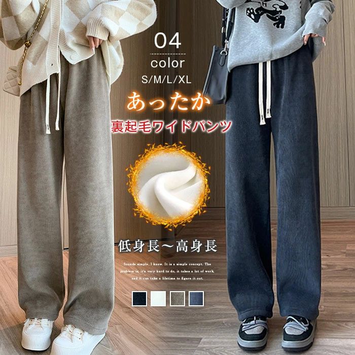 裏起毛 カジュアル パンツ 裏ボア 厚手 あったかパンツ 暖かい 防寒 冬 コーデユロイ ストレートパンツ 保温 レディース ワイドパンツ ボトムス ロングパンツ 長ズボン ウエス 体型カバー