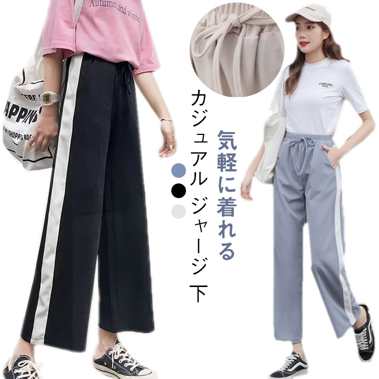 ワイドパンツ レディース ジャージ 下 9分丈 ゆったり カジュアル ストレートパンツ 学生 女子