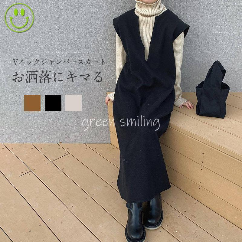 ジャンパースカート ノースリーブワンピース Iライン ジャンスカ vネック マタニティ 春秋冬 体型カバー ストレートシルエット レディース