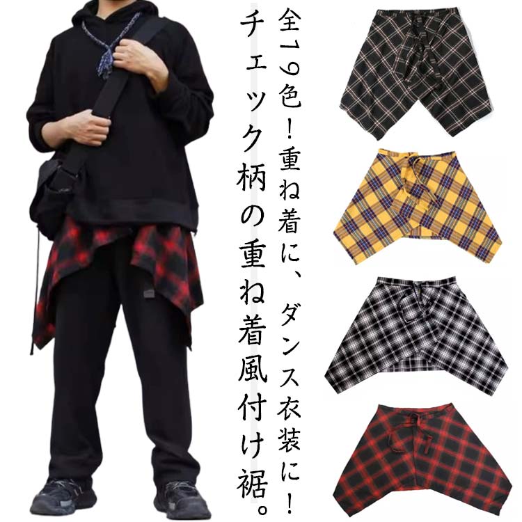 チェック柄 レイヤード 付け裾 シャツ腰巻き風スカート お尻が隠れる ダンス用 男女兼用