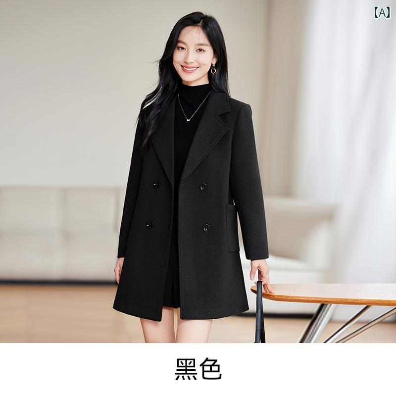 レディース コート ファッション おしゃれ 上品 カジュアル エレガント 通勤 婦人服 黒 ウール 秋冬 厚手 丈