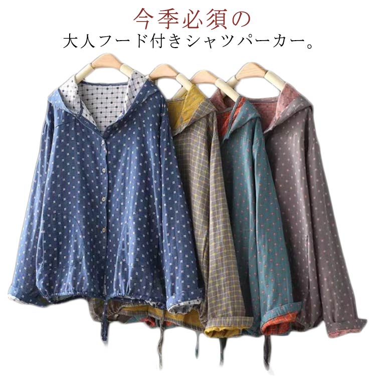 ジャケット レディース カジュアル 長袖 春 秋 薄手 総柄 シャツジャケット フード付き パーカー アウター ゆったり 可愛い カジュアルジャケット