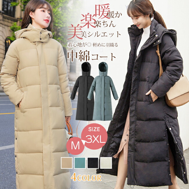 最強配送 中綿コート レディース ロング フード付き ラグラン ゆったり 大きいサイズ 無地 カジュアル 春 アウター 黒