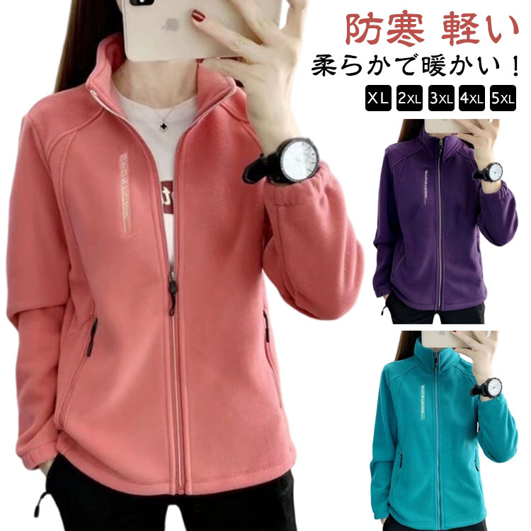 暖かい 冬 フリース ジャケット 防寒 レディース ふわふわ アウトドア ボア ジップアップ フルジップ 軽い 秋 フリースジャケット もこもこ 裏起毛 スタンド ブルゾン