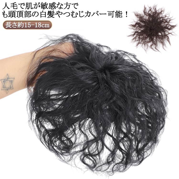 ウィック トップカバー つむじ 円型脱毛 頭頂部 ウィッグ 人毛 パーマ 自然 つむじ ショート 前髪あり 薄毛 脱毛 白髪 部分ウィッグ トップウィッグ かつら つけ毛 送料無料