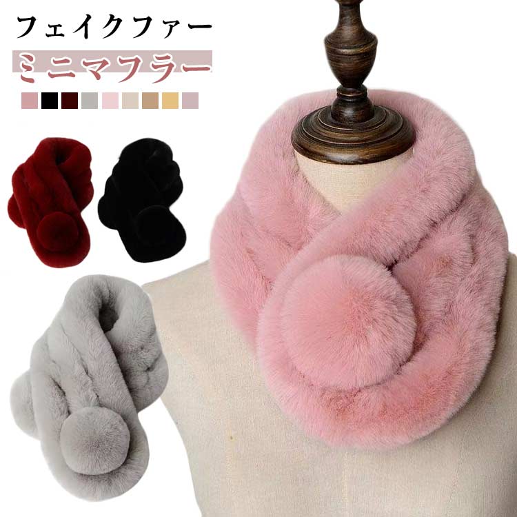 ファーマフラー ティペット レディース フェイクファー ポンポン ふわふわ スヌード ネックウォーマー ミニマフラー 差し込み あったか 寒さ対策 アクセサリー シンプル 秋冬 ファッション小物