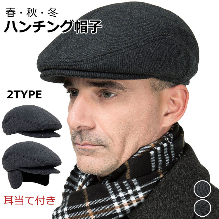 耳当て付き キャップ 中綿入り ウール混 メンズ 高齢者 スタイル ダークグレー シンプル&ベーシック キャスケット 春秋 薄手 冬