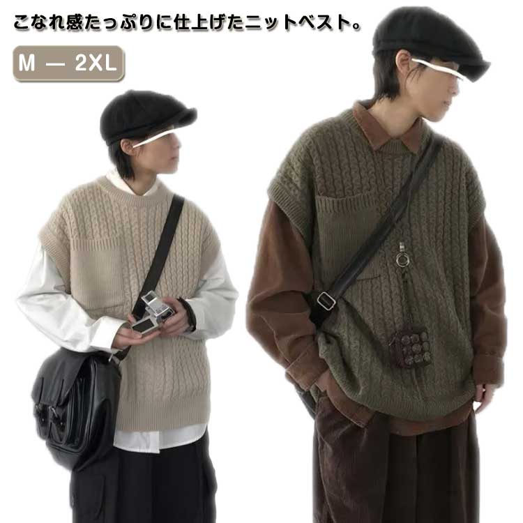 M~3XL ニットベスト メンズ ベスト ニット ノースリーブ ノーアイロン 紳士 セーターベスト ジレ 編み上げ セーター ウール混 洗える ニットセーター クルーネック 無地 春 秋 冬 シンプル