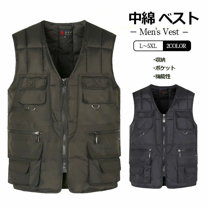 冬服 秋服 アウター メンズベスト 保温 暖かい 機能性 ポケット 収納 便利 ベスト 多ポケット 防寒ベスト ダウンベスト 多機能