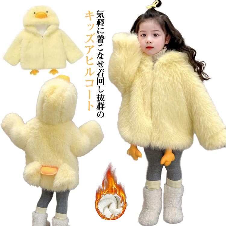ボアコート キッズ 子供服 アウター アヒル ムートンコート 女の子 冬服 厚手 トップス コート ジャケット 無地 フード付き オーバーコート ベビー服 暖かい 防寒 可愛い ふわふわ も おしゃれ