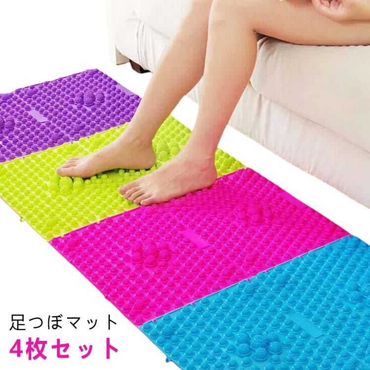 フットマット コンパクト つぼ押しグッズ ジョイント式 足裏マット 4枚セット 足つぼマット 繋げる カラフル ツボ押し 足踏み 長方形 ツボ押しマット 足マッサー 足裏刺激