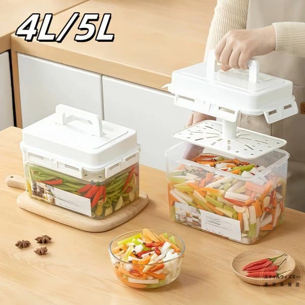 4 5L 大容量密閉キムチ発酵容器 蓋付き&ハンドル - 透明プラスチック製、省スペーススタッキング可能、簡単洗浄デザイン レストラン向け、キムチ 野菜 家庭