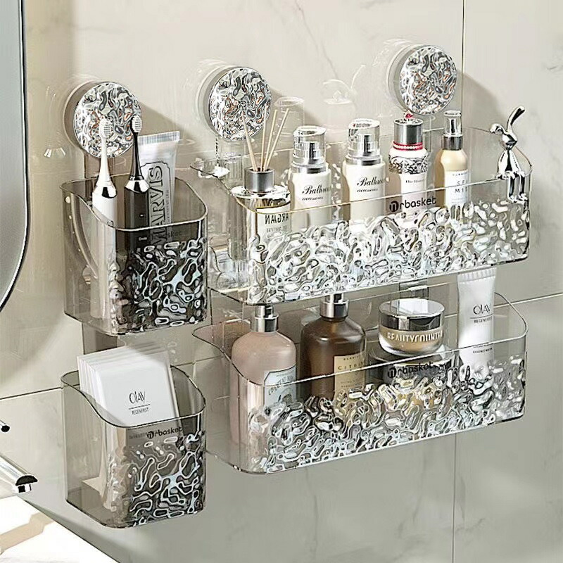 収納棚 洗面所ラック バスルーム 洗面所 ラック トレー 収納 ホルダー 吸盤 粘着式 浴室用ラック 約38.5×14×9cm 穴開けない 壁 棚 お風呂ラック コップ置き シャン 収納ラック