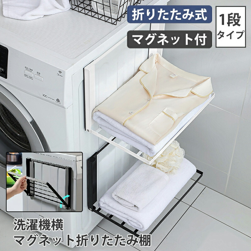 洗濯機横マグネット折り畳み棚 折りたたみ式 マグネット付き 洗濯機ラック 洗面所 ランドリールーム バスタオル パジャマ タオルラック ランドリー収納 棚 折りたたみ 洗濯機横 タ ラック