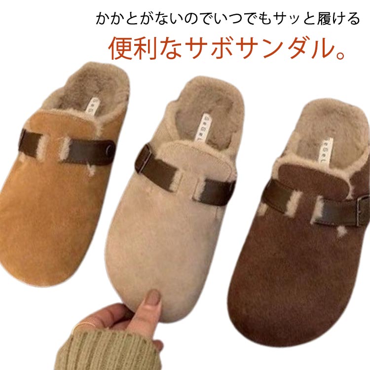 サボ あったか ファー カジュアル スウェード レディース ぺたんこ サンダル 冬用 かかとなし 防寒 ボア付き スリッポン オフィス シューズ スエード シンプル 仕事履き 楽ちん ク 靴