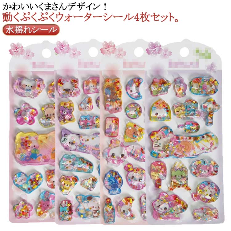ウォーターシール 4枚セット 女の子 水入りシール ゆらゆら かわいい ドロップシール ぷくぷくシール 立体シール 可愛い 小学生 ご褒美シール おはじきシール 男の子