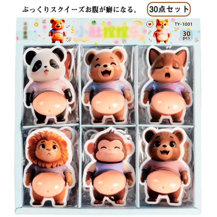 3Dお腹 スクイーズシール ぷにぷにシール おなかシール かわいい くま ご褒美シール スクイーズ 30点セット 立体ステッカー おしりシール パンダ ライオン 猿 マシュマロシ 動物