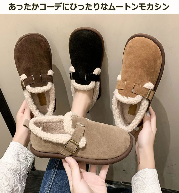 防寒靴 レディース モカシン ムートン ローファー ストラップ 暖かい もこもこ フラット パンプス 歩きやすい 通気性 疲れない マタニティー 通学 通勤 秋冬