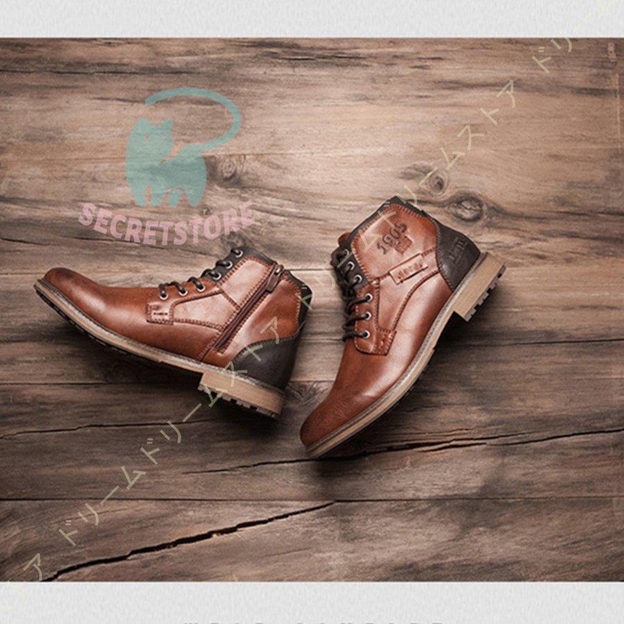 メンズ カジュアルシューズ サイドジップ ワークブーツ 防水 防滑 ブーツ ハイカット レースアップブーツ おしゃれ 冬用