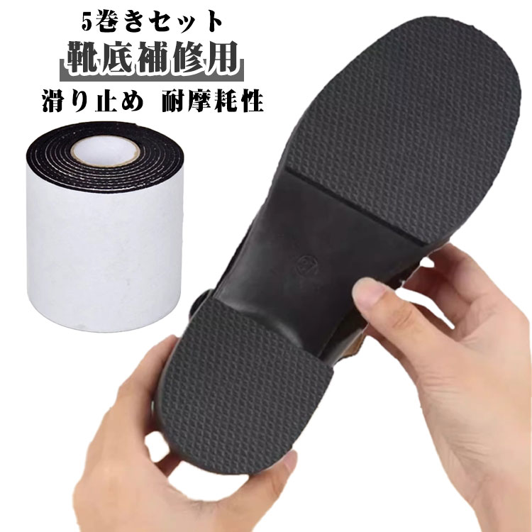 靴底 滑り止めシート 5巻きセット 靴底用滑り止めパッド 貼るだけ カット可能 靴底補修用 男女兼用 かんたん装着 靴底 耐摩耗性