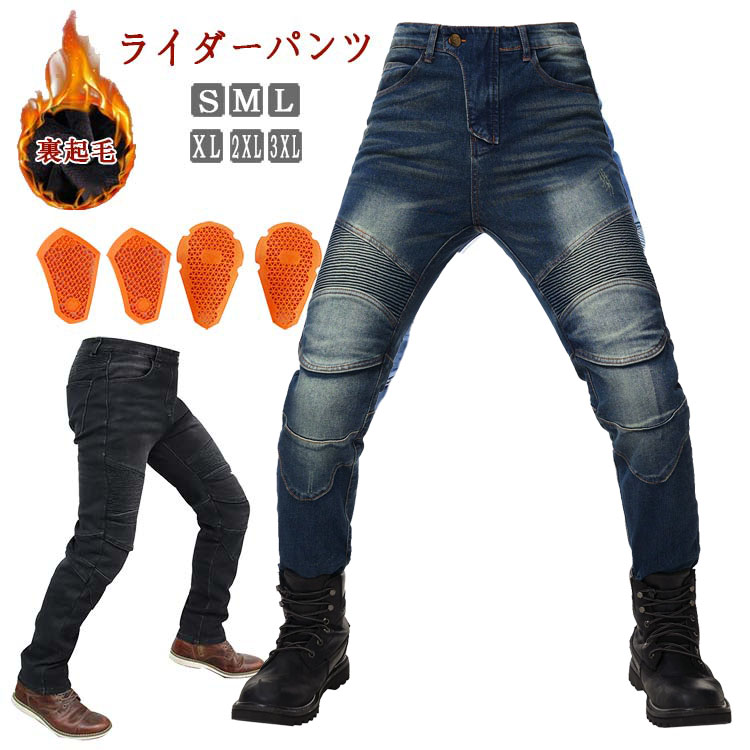 XS~3XL 裏起毛 プロテクター付き ライダーパンツ ジーンズ デニム バイクウェア パンツ オートバイ ニーパッド 膝当て 耐久 春夏秋 大腿骨パッド 保護 メンズ レーシングパンツ 膝パッド