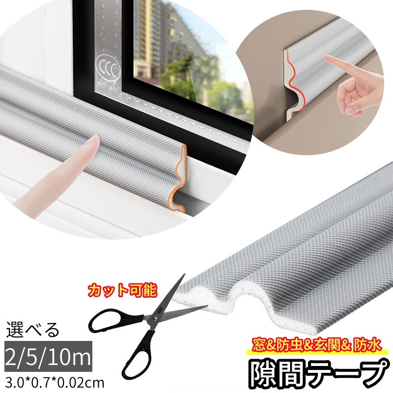 「選べる2 5 10」自由にカットできます 網戸 サッシ 防虫 すきま テープ すきま風 ストッパー 隙間風防止 グレー 玄関 室内 網戸 すき間 防犯対策すきまパッキン 埋め クッション