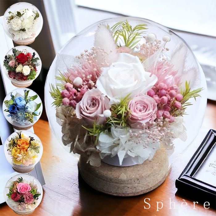 プリザーブドフラワープリザーブドフラワー ドームアレンジ 高級 結婚祝い 退職祝い 送別会 新築祝い 開店祝い インテリア お祝い かご 誕生日