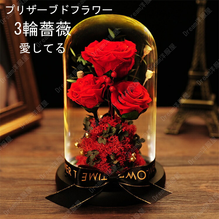 ブリザードフラワー 電池ボックス 電池 レッド薔薇 赤 3輪 枯れないお花 誕生日 結婚祝い プレゼント 花 母親 女友達 彼女 妻 嫁 祖母 姉 妹 ママ 友 職場 女性 30歳 50代 7 20代
