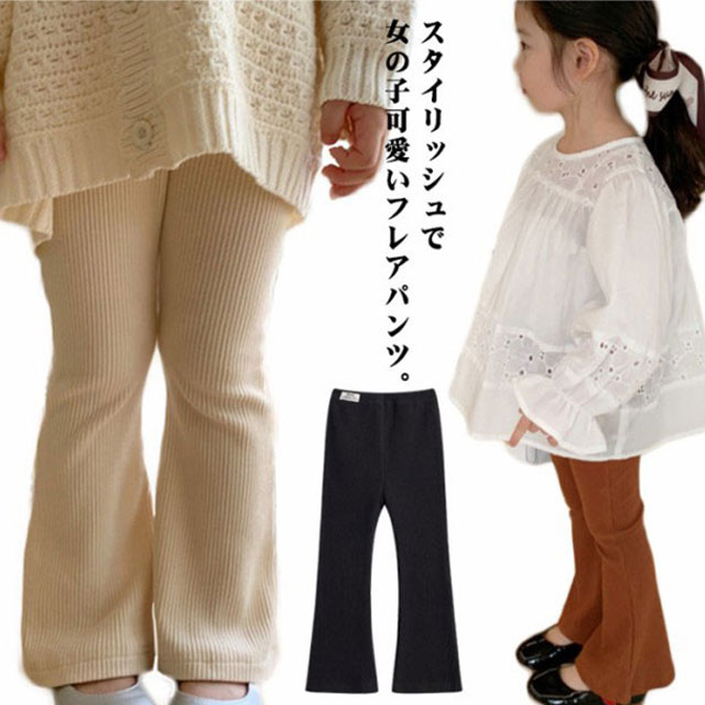 リブパンツ フレアパンツ キッズ 子供服 可愛い 130 長ズボン レギンス ベビー 韓国ファッション 100 女の子パンツ ロングパンツ 春秋 おしゃれ 楽ちんパンツ リブフレアパンツ