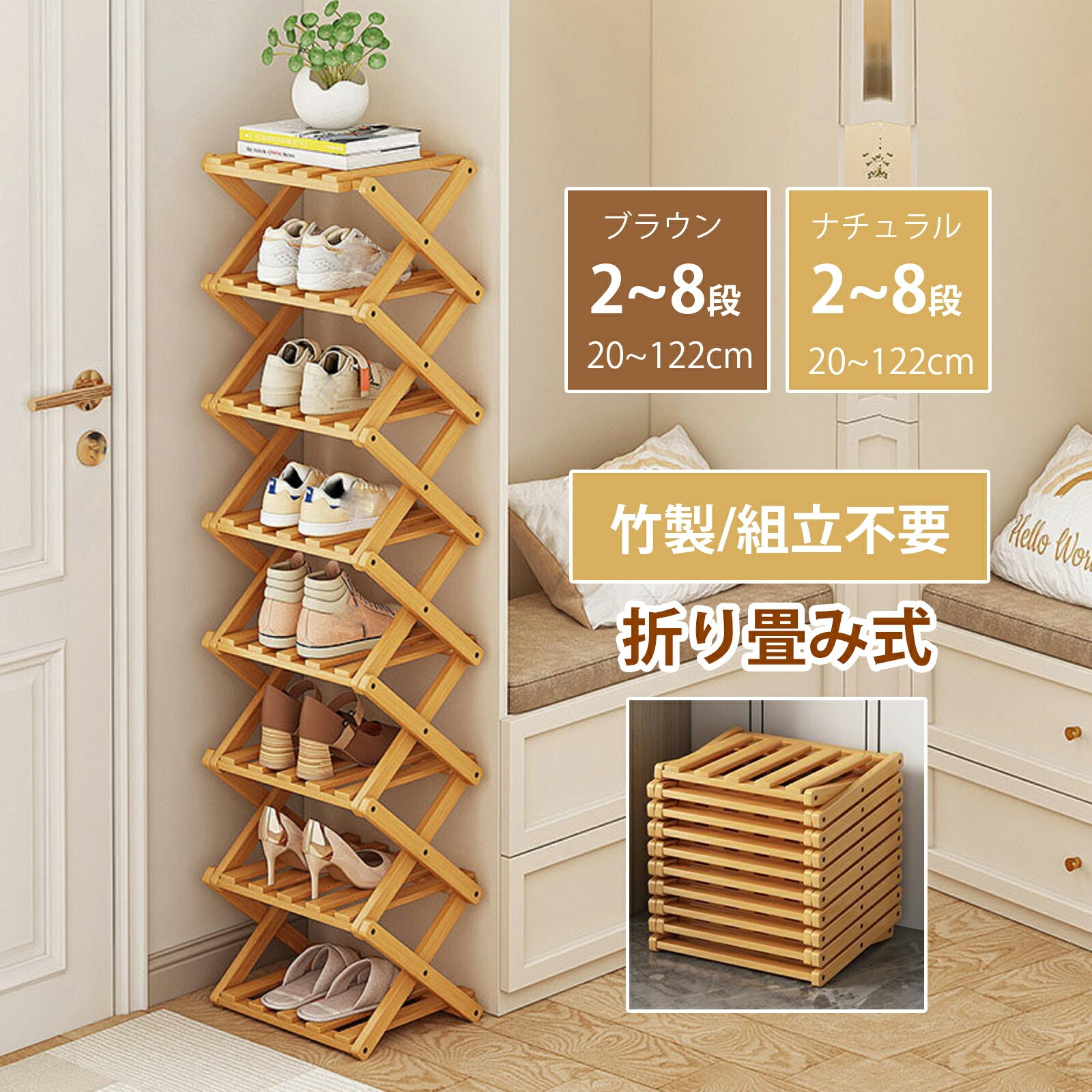 選べる豊富なサイズシューズラックスリム組立不要靴箱靴棚下駄箱靴収納シューズボックス完成品玄関収納下足箱折畳式省スペース竹製コンパクト10段伸縮シューズ収納玄関家具大容量会社ベランダ対応伸縮しっかり設計