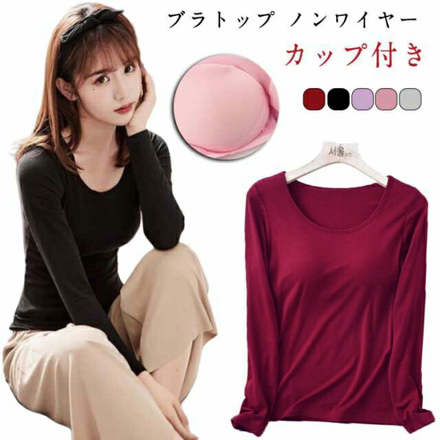 カップ付き インナー レディース 長袖Tシャツ 長袖 下着 Tシャツブラ 秋冬 無地 肌着 ブラトップ カットソー ブラジャー ブラ 速乾 インナーシャツ 締め付けない プレゼ パッド付き