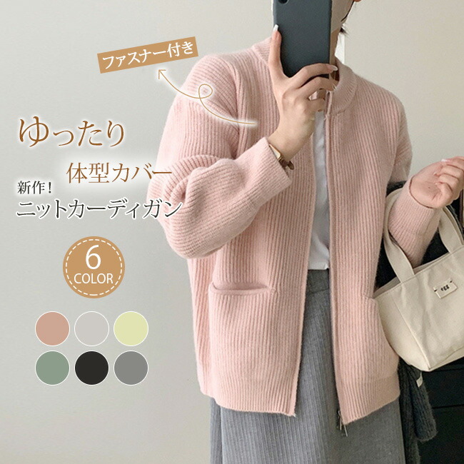 最強配送 秋新作 ニットカーディガン ファスナー付き レディース ニットセーター 長袖 厚手 無地 前開き ゆったり オーバーサイズ 体型カバー 可愛い 着痩せ 通勤 春秋 冬 カジュアル