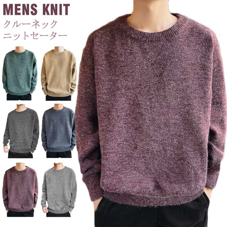 ニット セーター クルーネック ニットセーター メンズ Uネック 防寒 冬物 丸首